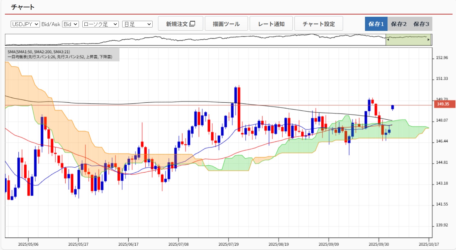 ドル円は先週末から2円近く上昇し、149円前半でスタートしています。日経平均も大きく上昇して始まる見通し。
