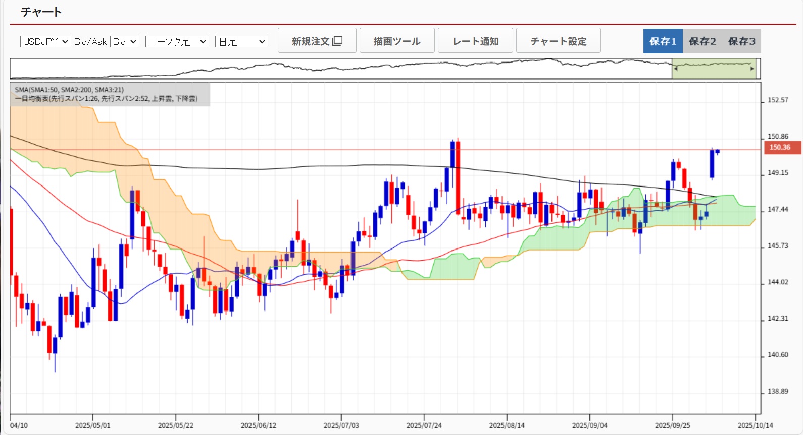 「1ドル150円は行き過ぎ」発言を受け、ドル円クロス円が一時急落する場面がありました。その他、トランプ大統領が10/27~来日する方向で調整に入っているようです。