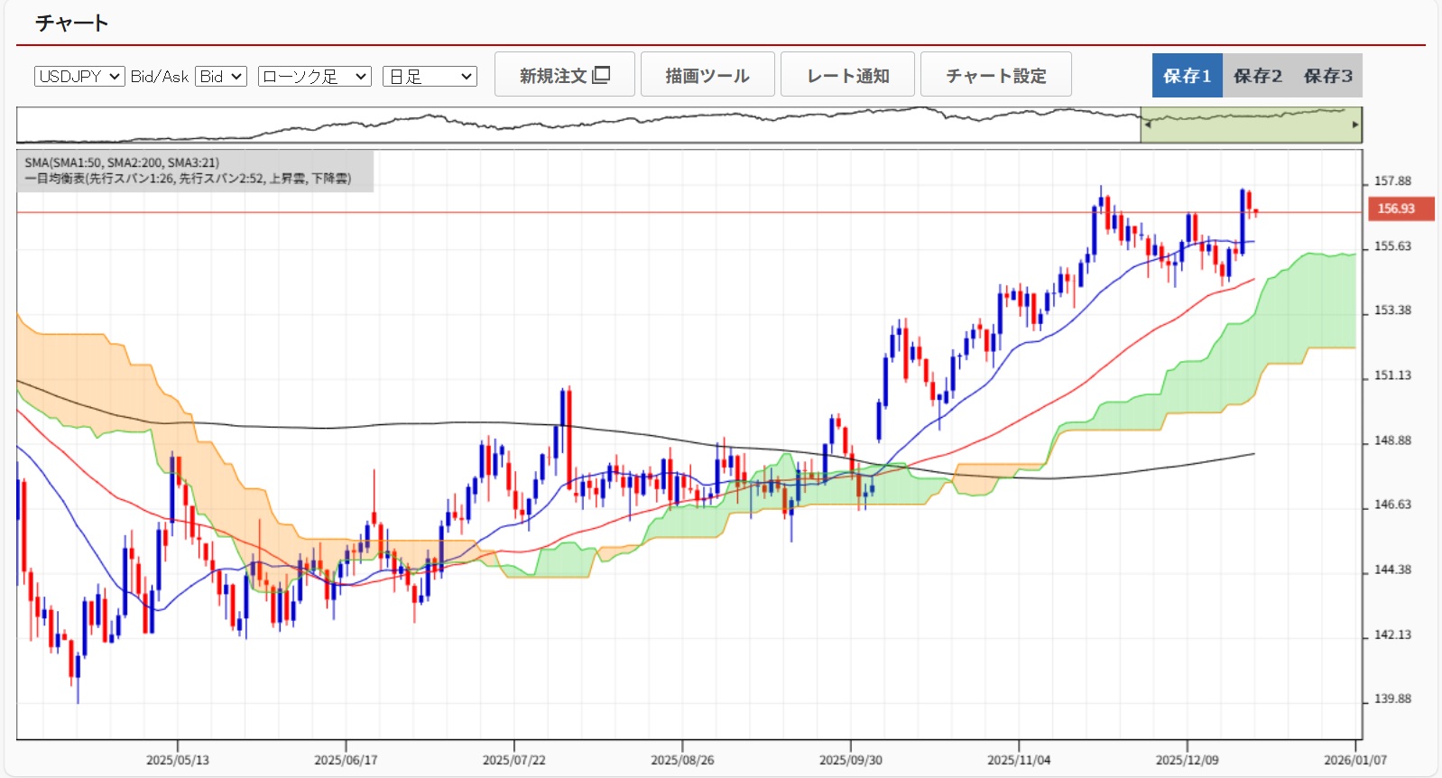 「断固として措置を取る」「フリーハンド」などと発言すると円買いで反応し、ドル円は156.70まで下落しました。