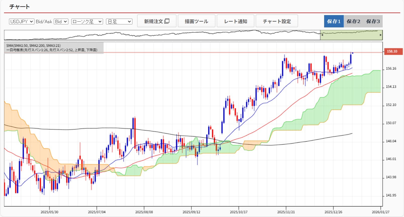 結局ドル円は事前に注目を集めていた米12月雇用統計やトランプ関税の合法性判断ではなく、高市内閣が解散検討報道を受けて158円台に乗せています。日経平均先物も大きく上昇しました。
