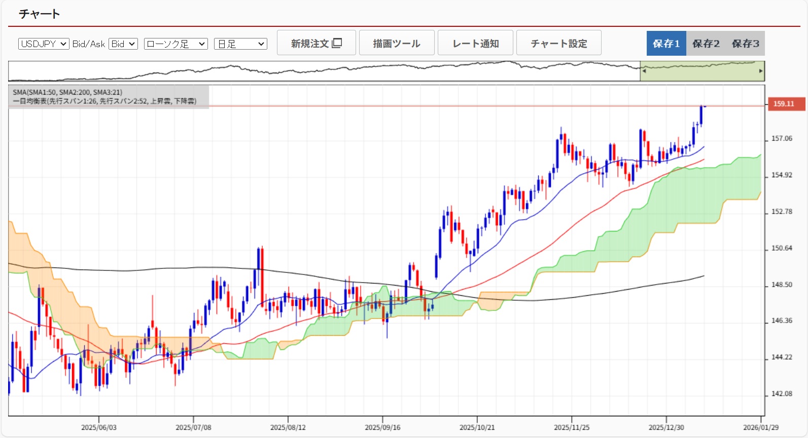 高市内閣解散検討前報道前のレンジ154-158から158-162へ移行しそうです。162円を超えて介入を試しに来るか注目しています。